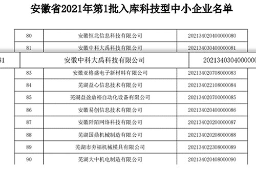入選2022年度安徽省專精特新中小企業 入選2022年度安徽省創(chuàng)新型中小企業名單