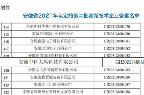 中科大禹榮登2023年度蚌埠市“專精特新”企業20強