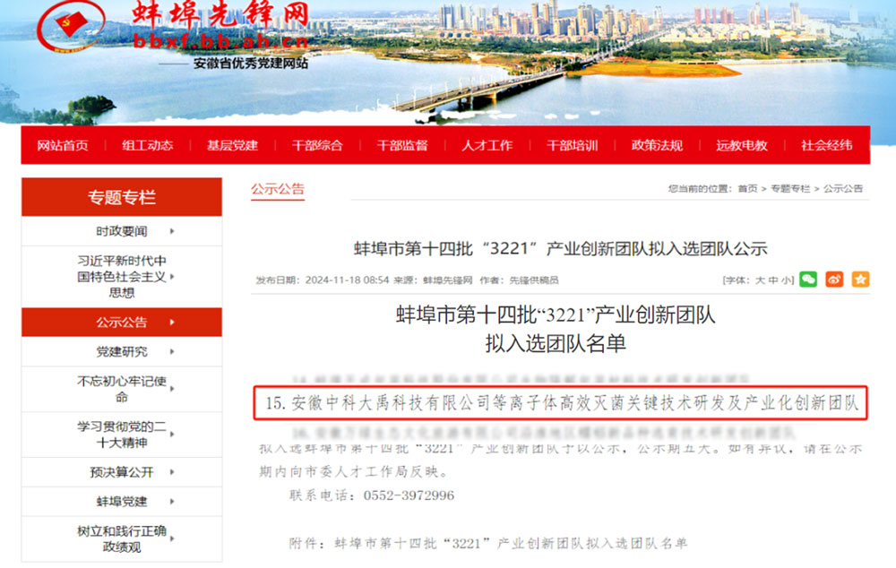 中科大禹入選蚌埠市第十四批“3221”產業創(chuàng)新團隊